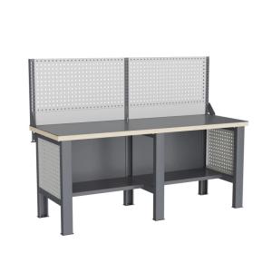 - Рабочее место комплектуется перфорированным экраном, на котором удобно размещать держатели для инструментов, полки и другие навесные элементы, благодаря чему весь необходимый инвентарь всегда будет на виду.